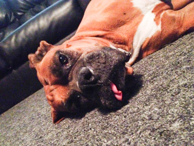 Even though he woke me up at 4:30AM this morning (and I didn’t have to be up until 6:15!) Grr. When he needs out or is over the idea of sleeping, he will come up on my side of the bed and breath heavily into my face until I get up. Or, he shakes his ears while standing next to the wall so it makes a terribly loud noise. He does it on purpose for sure. What a punk.