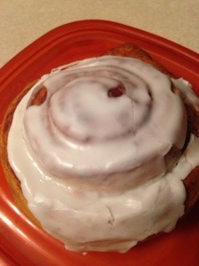 4. Coming home to chili and cinnamon rolls. Courtesy of the hubby. No good pictures. I inhaled it. Here is a leftover cinnamon roll for you. You’re welcome.