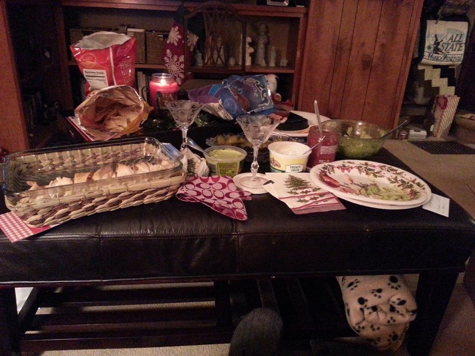 Mom had a delicious spread of snack foods, lasagna soup, desserts and of course champagne and beer.