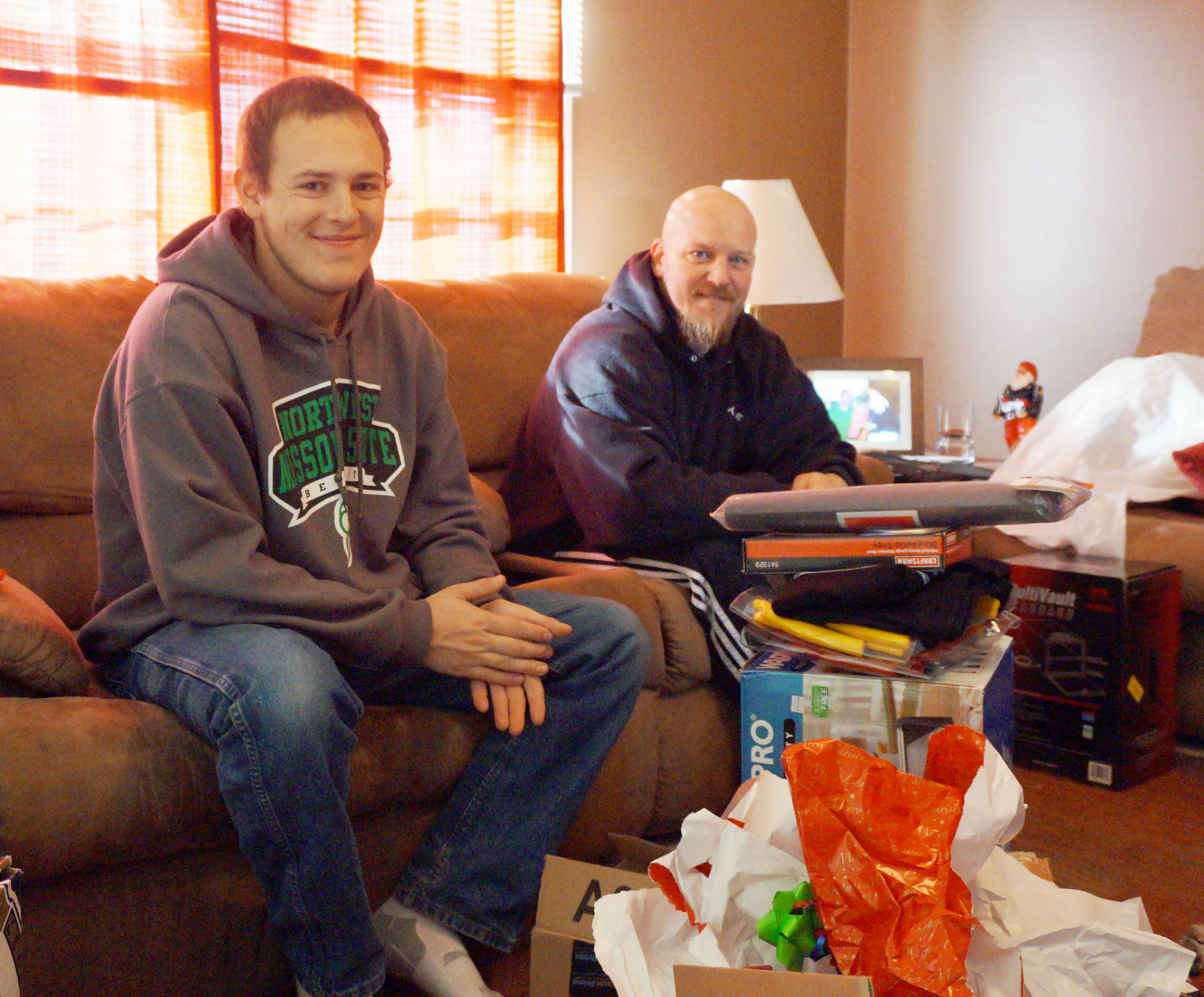 Kyle and his pile.  It should be noted that some of those were also from his grandparents.  He was unable to make the Christmas Eve dinner due to his work schedule.