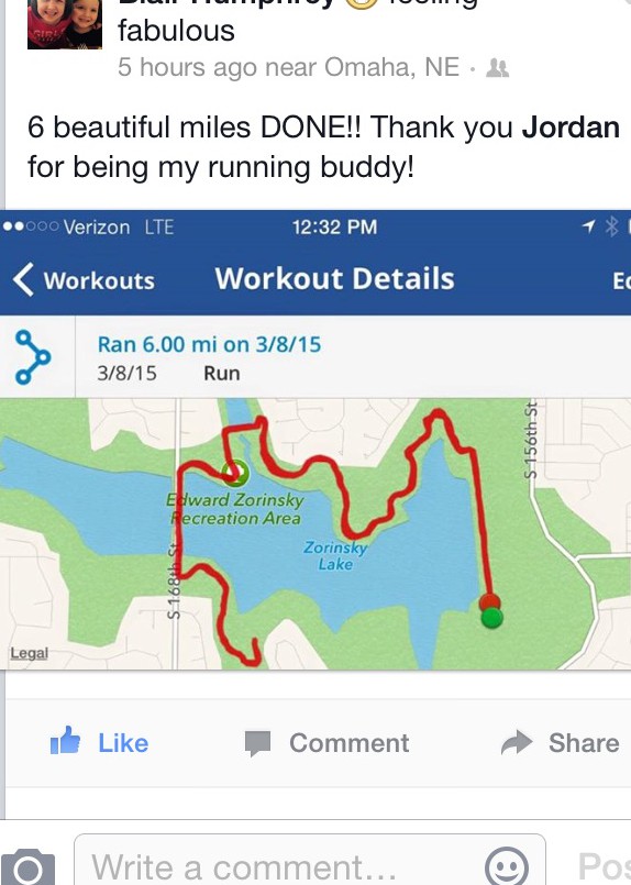 Sunday I was able to meet up with my friend Blair to get in 6 miles at Zorinsky Lake. It was a gorgeous morning for it, too. It’s about time I started running again. I’ve got a half marathon in two months. EEK! I HAVE to beat my 2 hour time. 1:59 is my goal time this year. 🙂