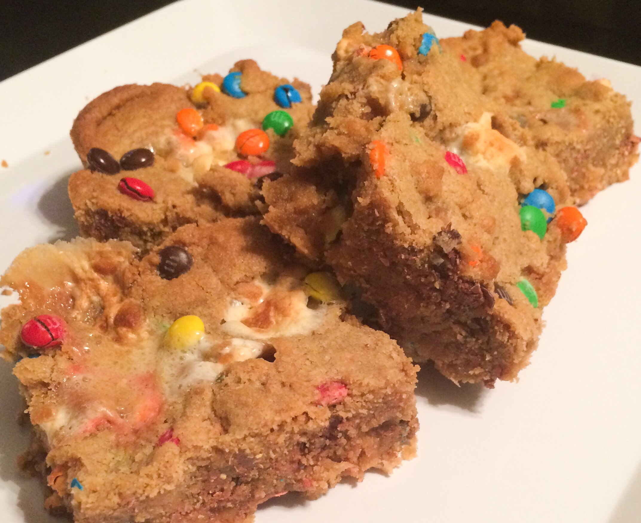 I made two batches of these babies. One went to a friends house (I used all pink M&M’s for Breast Cancer Awareness in one batch – GO, TONYA, GO!) and the other went with Clint to work.