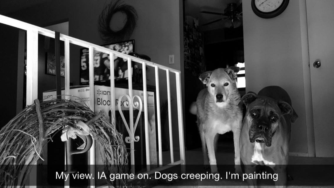 … with the Iowa game on and dogs monitoring my work, of course.