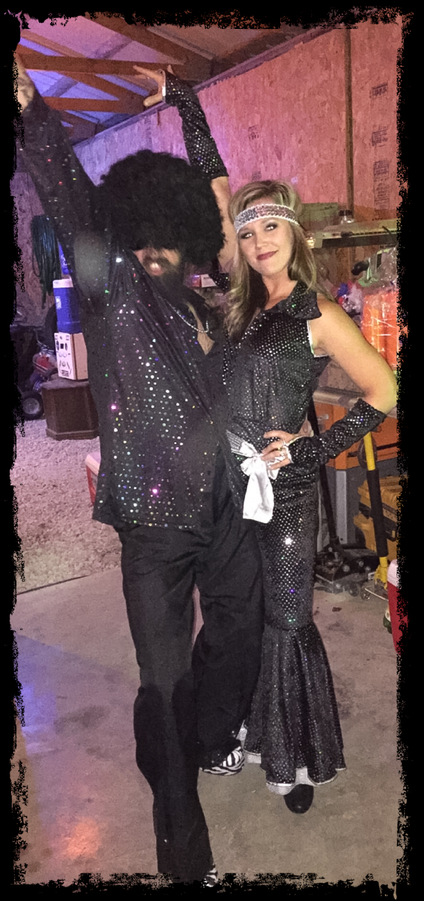 Clint’s outfit stole the show for sure!  The wig, the spray painted black beard, the bell bottoms, sparkly shirt, platform shoes with goldfish in them…