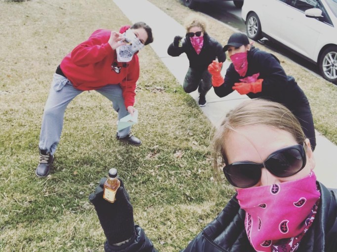 2020 brought a surprise marriage and new last name for Tracy, so mid-March at the start of the pandemic, we ambushed her again wearing very reliable COVID gear and shooters of whiskey.