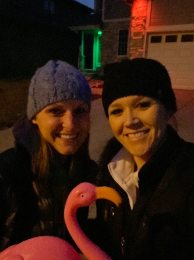 We didn’t exactly think this flocking through as Jess rode home with us on Sunday morning. As we were rolling into her driveway she noticed the flamingo’s, but ever so smoothly I blurted out: