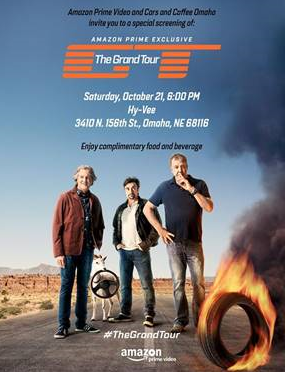 Coffee Cruise Omaha AKA Cars and Coffee Omaha have been asked by Amazon Prime to host an exclusive viewing of Amazon Prime’s The Grand Tour show THIS Saturday night, October 21st.