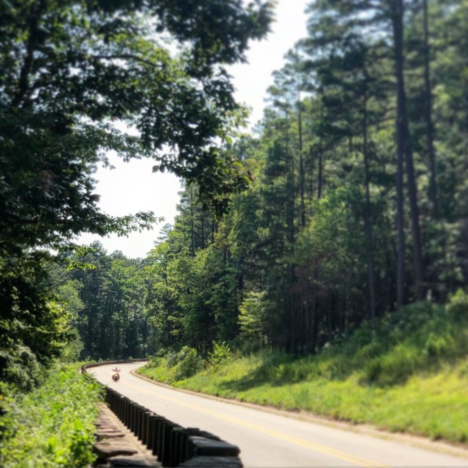 Our route took us straight south on 21 to the D&J Country Store where we sought out water and air-conditioning for a few minutes.  The hotter-than-satan’s-lair weather conditions, while straddling a boiling hot motor that is working double time thanks to the terrain… well…. you get the idea of what we looked like at this point.   Thanks to the cashier we received the recommendation to head back into the national forest to Country Road 4400 and take a left.  Literally saw ONE car in the hour we were in this part of the forest.  It was perfect.