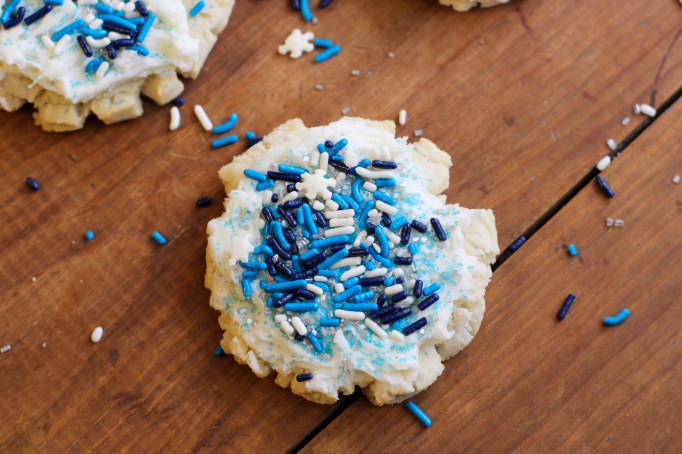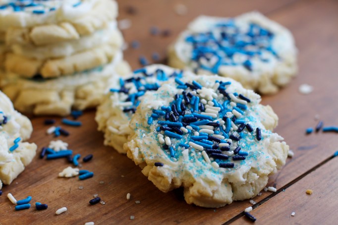 I used the cookie recipe as written, but was feeling a buttercream frosting. I will share the original recipe in it’s entirety below, but will also give you the buttercream frosting I used for this particular batch.