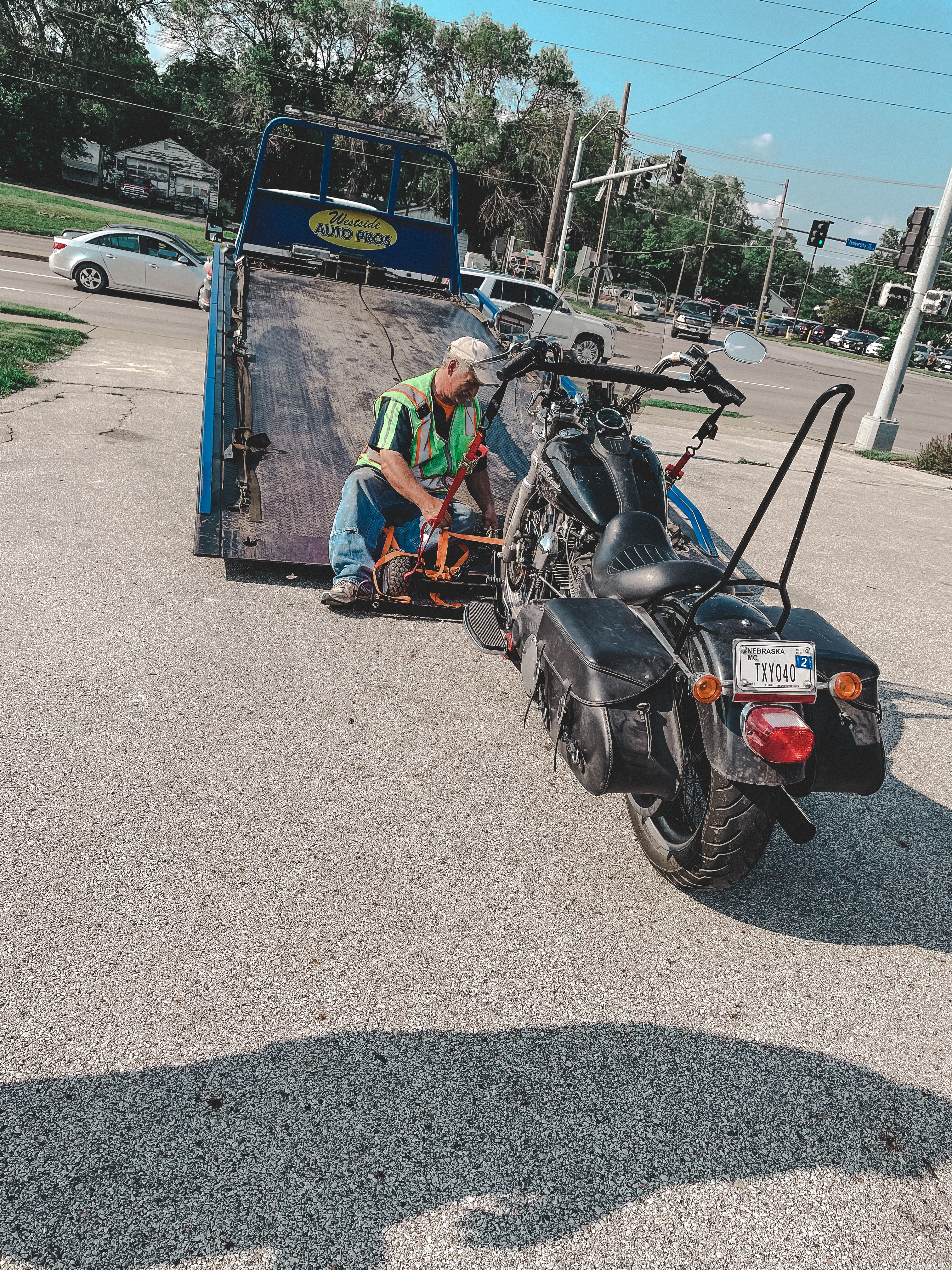 If you ride, you know to expect the unexpected. Our new reality hit about 2.5 hours into our journey when we found ourselves a parking lot and a broke down bike. Friends, let me introduce you to my friend, Tyree.