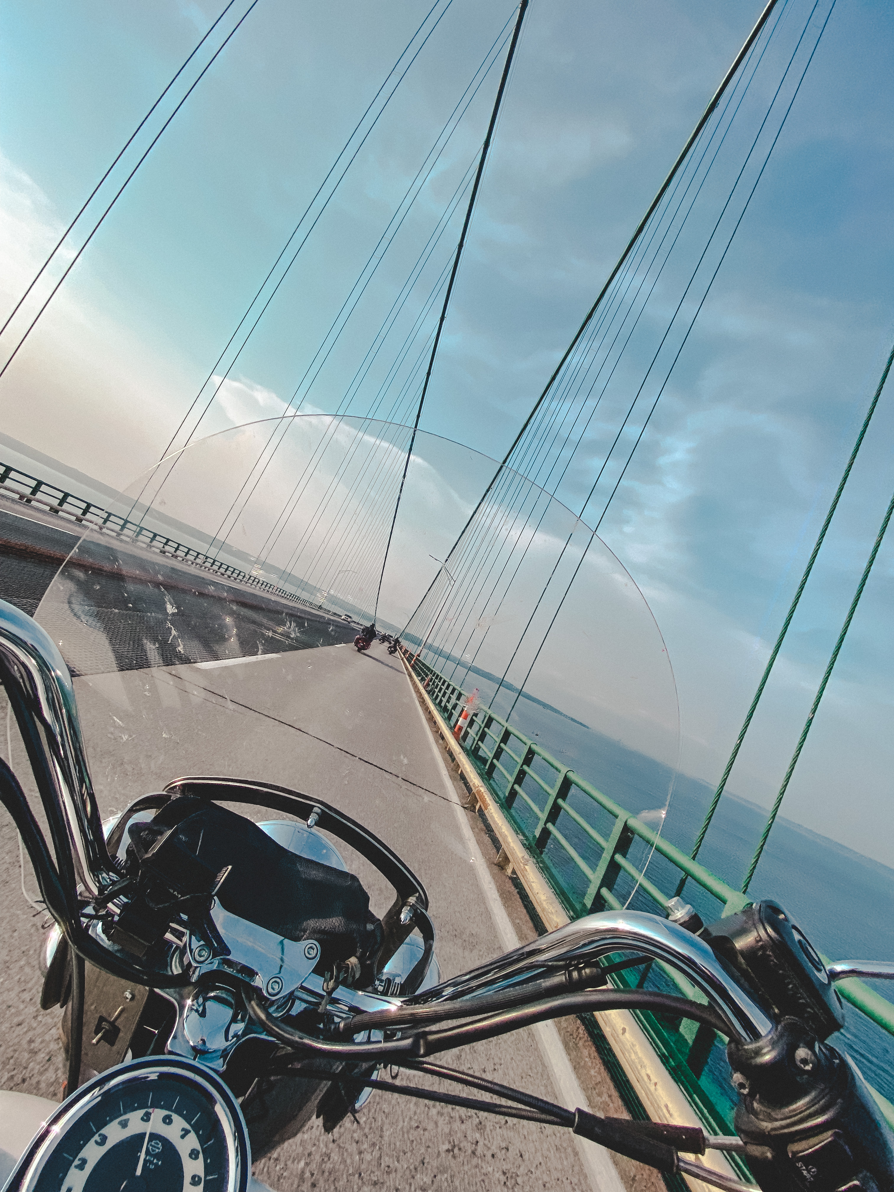 I LIVED for the journey across Mackinac Bridge. There is just something magical about riding a motorcycle across a bridge that lights me up. Mackinac Bridge is the longest suspension bridge between anchorages in the Western Hemisphere, connecting Michigan’s Upper and Lower Peninsulas.