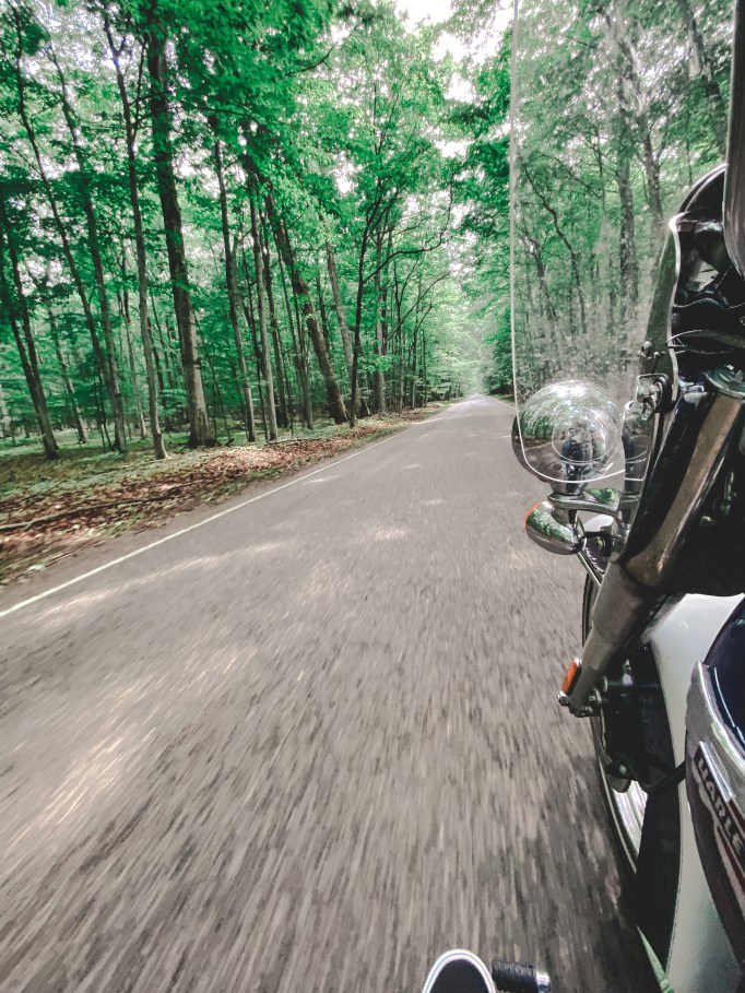 Rain aside, we headed south to ride Michigan’s famed Tunnel of Trees on M-119. The stretch to and through was absolutely breathtaking. 25 MPH and nothing but trees and an occasional break in landscape with views of Lake Michigan. It’s in these moments I wish I had a GoPro to bring you on the journey with us. Simply stunning.