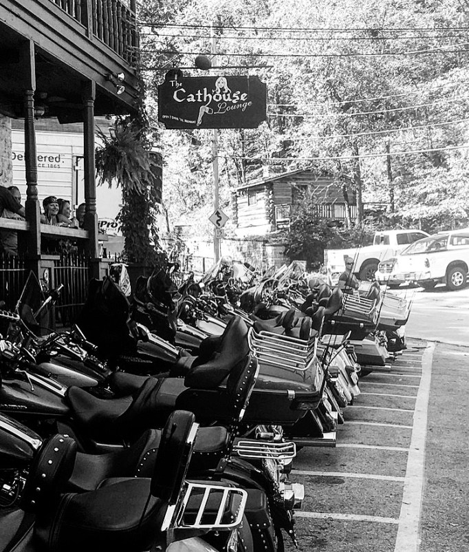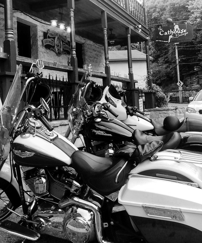 A wrong turn (but gorgeous byway) took us 30 miles out of our way but we took it as a challenge and headed to Eureka Springs anyway. We NEEDED A BEER and a BURGER something fierce by this point and so around 7:30pm, we rolled into the Cat House Lounge, a favorite amongst bikers.