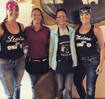 After a few conversations with our waitress we found out that she and another employee are referred to as Thelma & Louise. Of course, we had to have our photos taken with the local T&L before we departed for our FULL day on two-wheels.