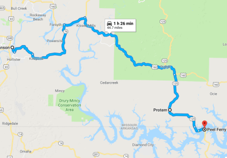 First leg: Branson to Peel, Arkansas so we could take the ferry!