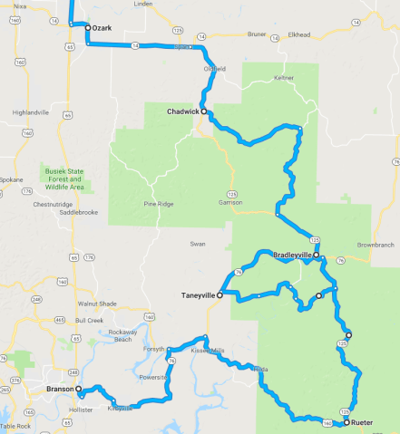If you are in the area, this route is a must out of Branson. Rolling hills, incredible views and curvy roads the entire 44 miles. And as always when traveling into mountainous areas, plan for almost double the time as a straight path may take you. Lot’s of gear shifting (and FUN!)