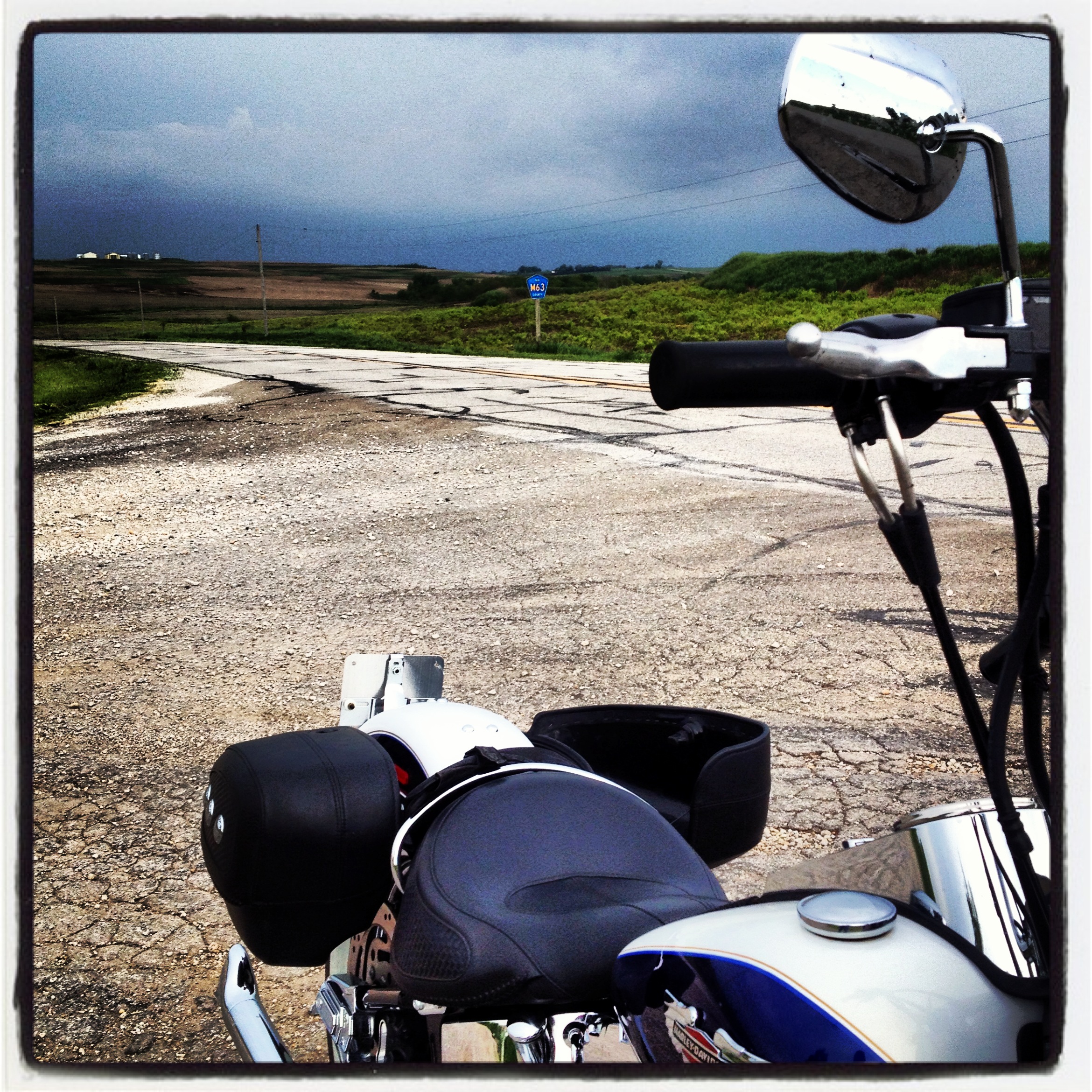 I timed my departure to coincide with the sunset. The backroads of Iowa never disappoint, so there I sat, by myself, no traffic, the only sounds coming from the low grumble of my bike and the chirps of bugs, watching the sunset ever so softly until it disappeared.