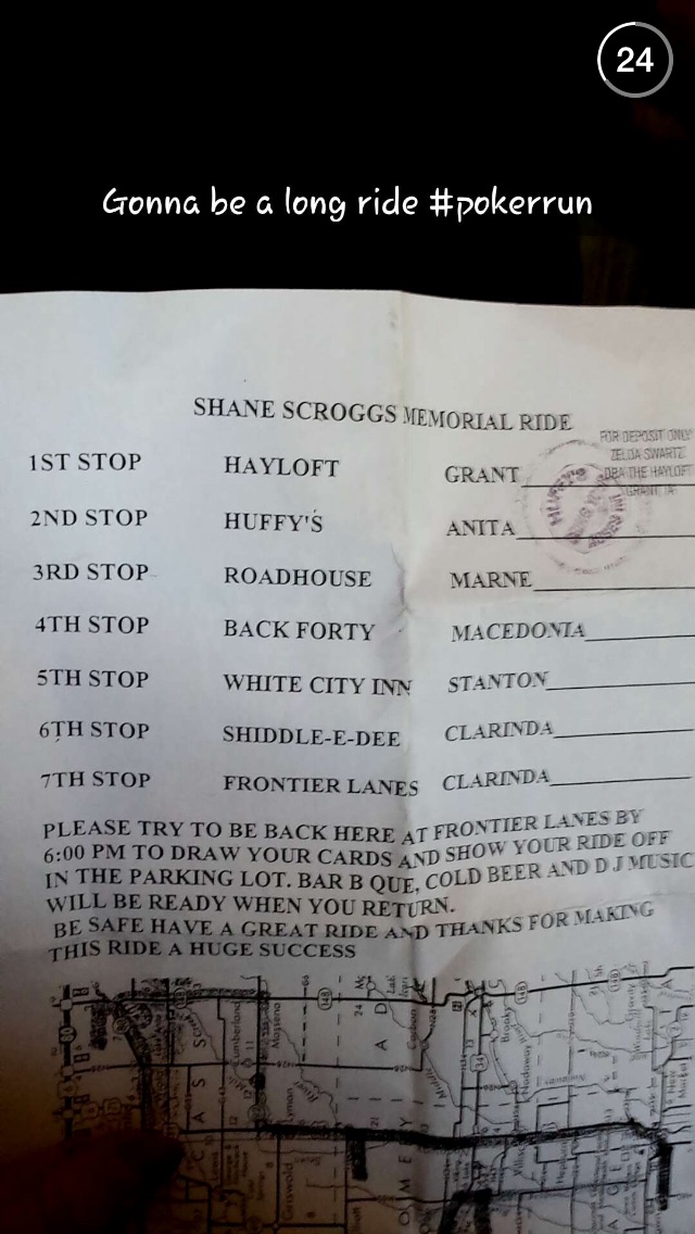 Saturday the 9th was the annual Scroggs memorial run out of Clarinda, so instead of heading to the farm to continue helping with the Pirtlefest shenanigans, I took off on the bike BACK to Clarinda to enjoy an afternoon of riding.