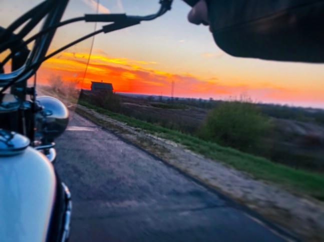 Therapy- It’s riding along the countryside with tree lined roads and riding into a sunset where I find peace, serenity and clarity.